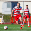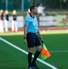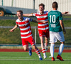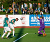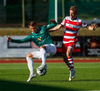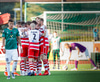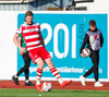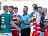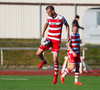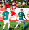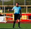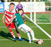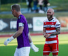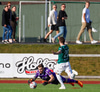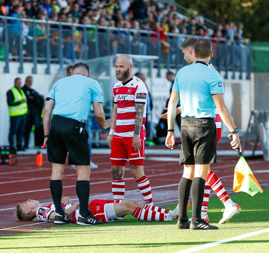 Damir brýtur á Valgeiri við hliðarlínuna og það færist smá hiti í leikinn. Röggsamur dómari leiksins fljótur að stilla til friðar.