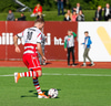 Ásgeir Marteinsson býr sig undir að taka spyrnuna og gefa boltann fyrir. Spyrnan mjög slök og þetta tækifæri HK varð að engu.