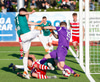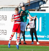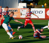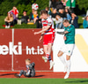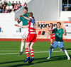 DAUÐAFÆÆÆÆRI!!!! Mikkelsen með skalla sem Arnar Freyr nær að verja með tilþrifum!