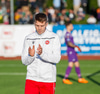 Gunnleifur Gunnleifsson tók ansi takmarkaða upphitun úti á vellinum. Greinilegt að hann er alls ekki 100%.