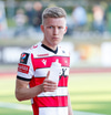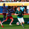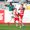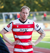 Thomas Mikkelsen í skallafæri. Framhjá.