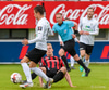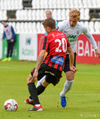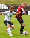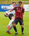 Júlíus með stungusendingu ætluð Erlingi en Daði kemur út og hirðir boltann á undan honum.