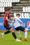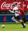 Guðmundur Andri er að fara illa með Brynjar, fer framhjá honum enn og aftur og nú neglir Brynjar hann niður í kjölfarið, glórulaust brot og klárt spjald.