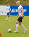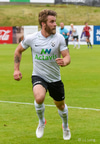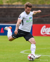 Júlíus hleður í skot fyrir utan teig, skotið er gott en fer rétt framhjá markinu.