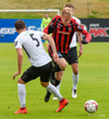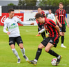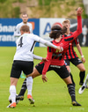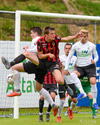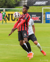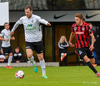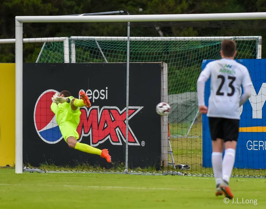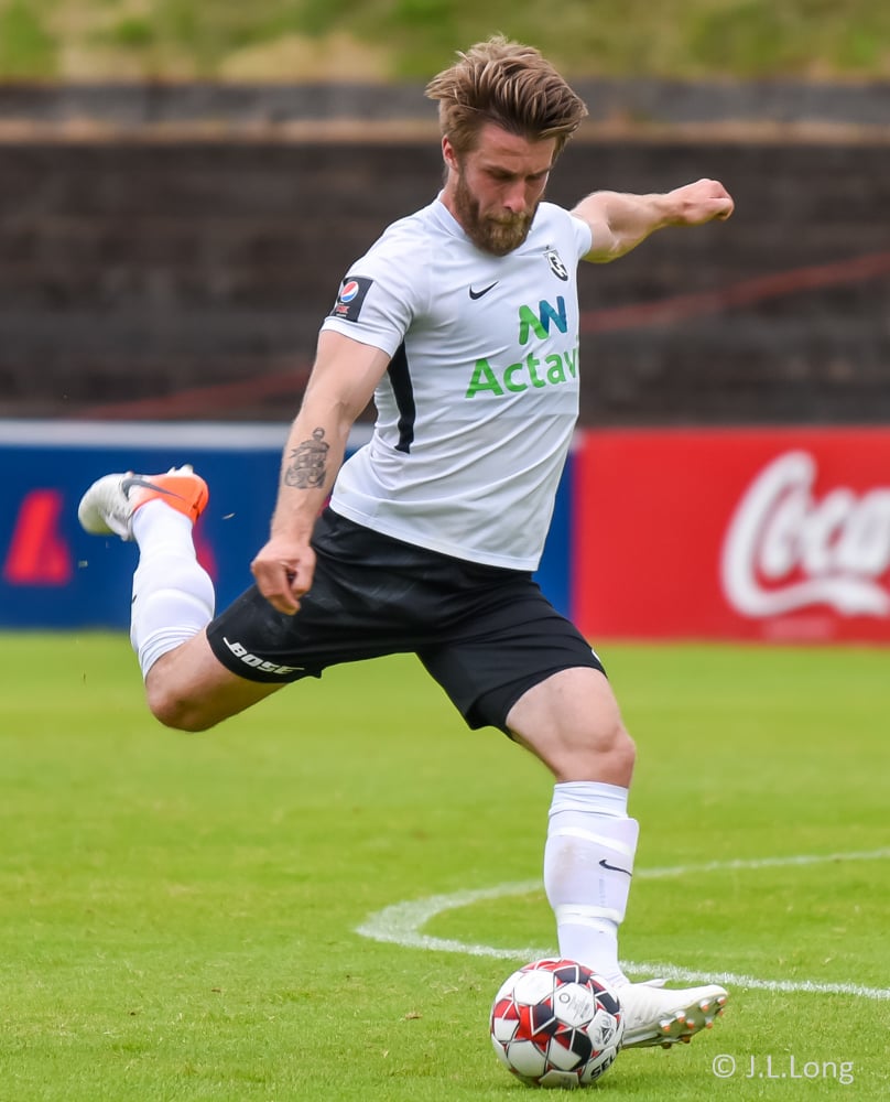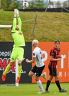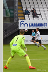 Quee kemst í fína skotstöðu við teigslínuna en skot hans er beint á Daða Frey sem handsamar boltann þægilega.
