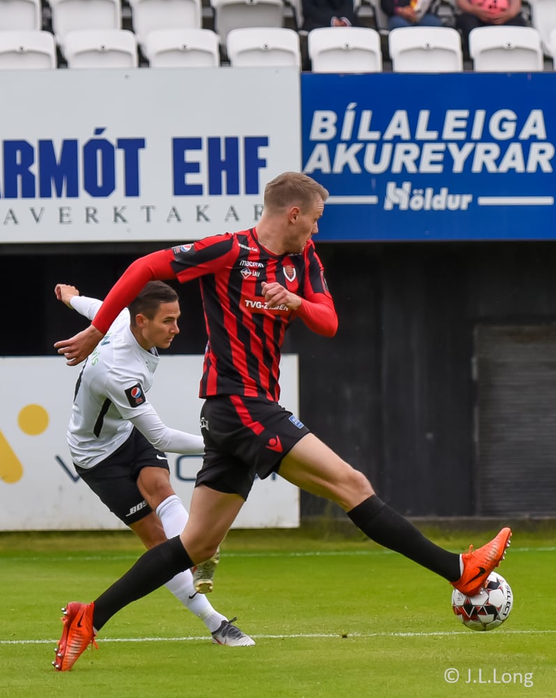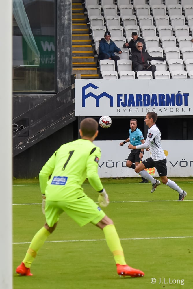 Eftir harða baráttu í teignum dettur boltinn fyrir Erling í dauðafæri í teignum en hann hittir boltann skelfilega og setur hann yfir markið. Þarna á Erlingur einfaldlega að skora!
