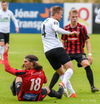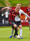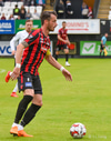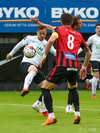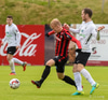 FH ná strax boltanum og keyra upp kantinn, Jónatan með fyrirgjöfina á Björn Daníel sem skallar boltann yfir markið.