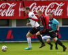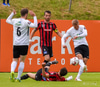 Guðmundur Andri reynir að keyra framhjá nafna sínum Kristjánssyni en Gummi stígur hann vel út, miklu sterkari og gerir þetta mjög vel. Guðmundur Andri vildi víti en þetta var hárrétt, frábær varnarleikur.