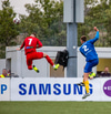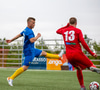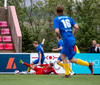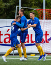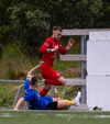 Sean skorar með frábærri spyrnu en dómarinn tekur markið af. Hann segir að Arnar hafi verið of nálægt veggnum