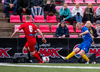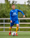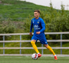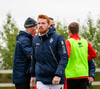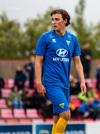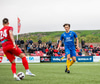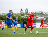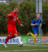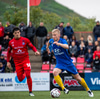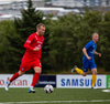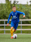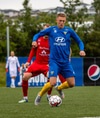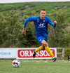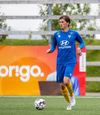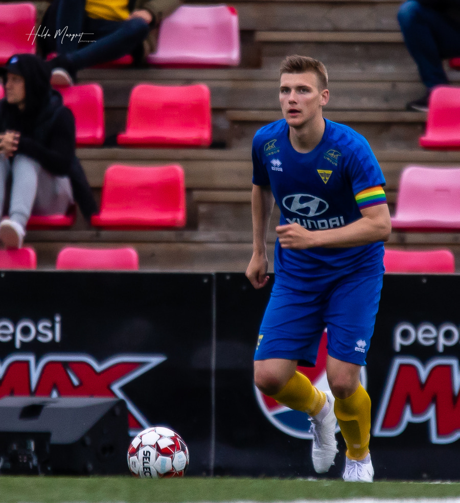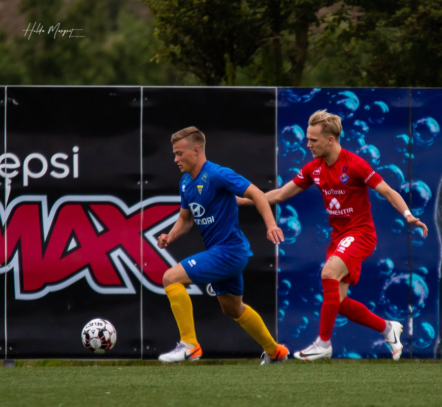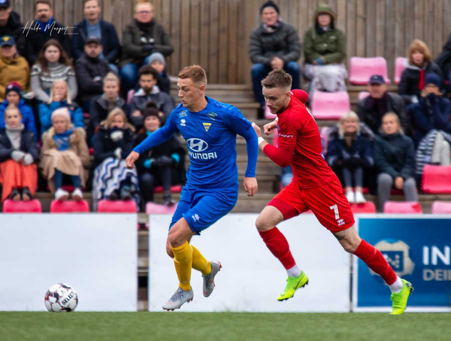 Orri fær boltann frá Hákoni og sprettir upp hægri kantinn en sendinginn inn í teig ekki nógu góð