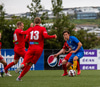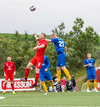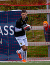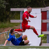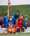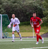 Gróttumenn færa sig ofar og Valtýr reynir sendinguna inn en enn og aftur fer hann í hornspyrnu