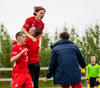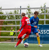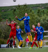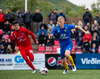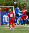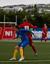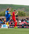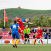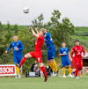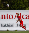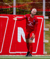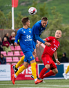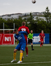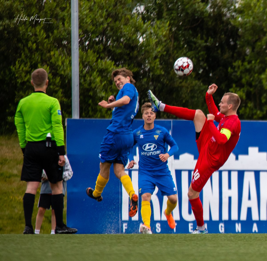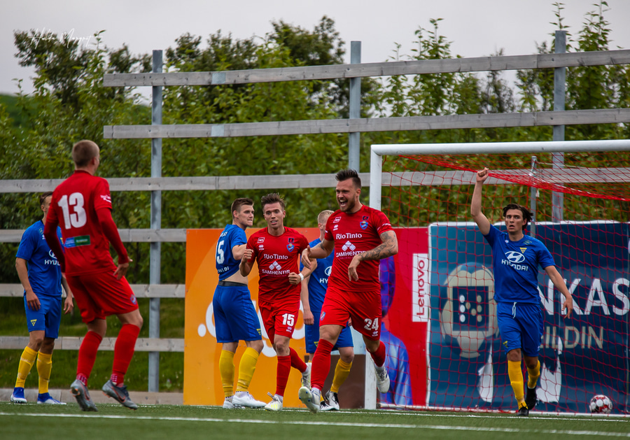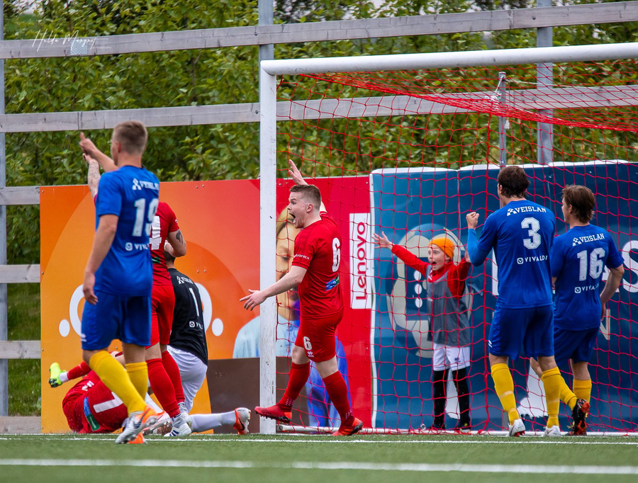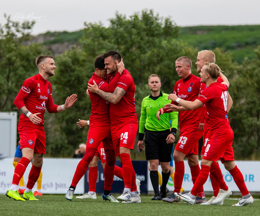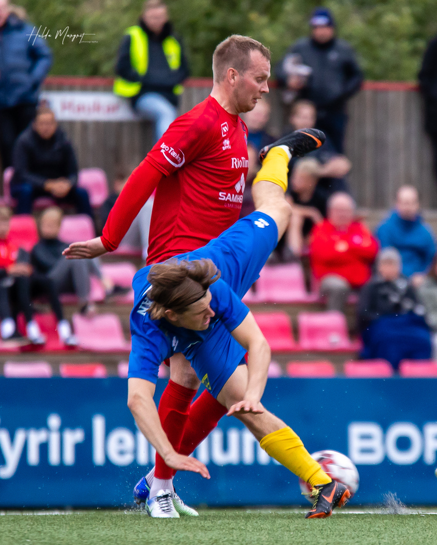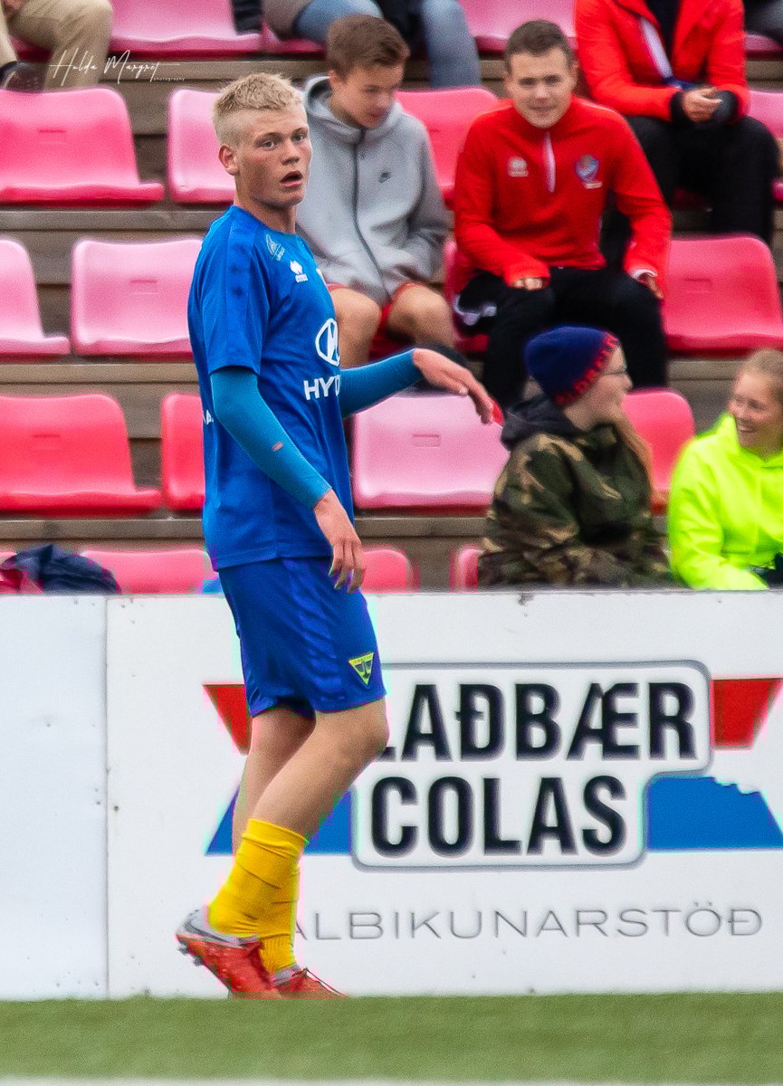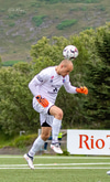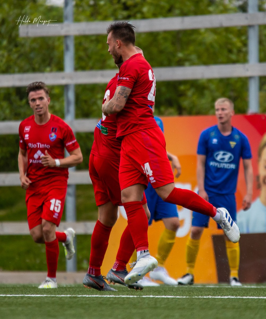 Halldór Kristján fyrirliði kemur sínum mönnum yfir með flottum skalla eftir aukaspyrnuna