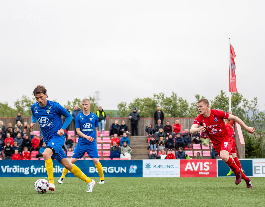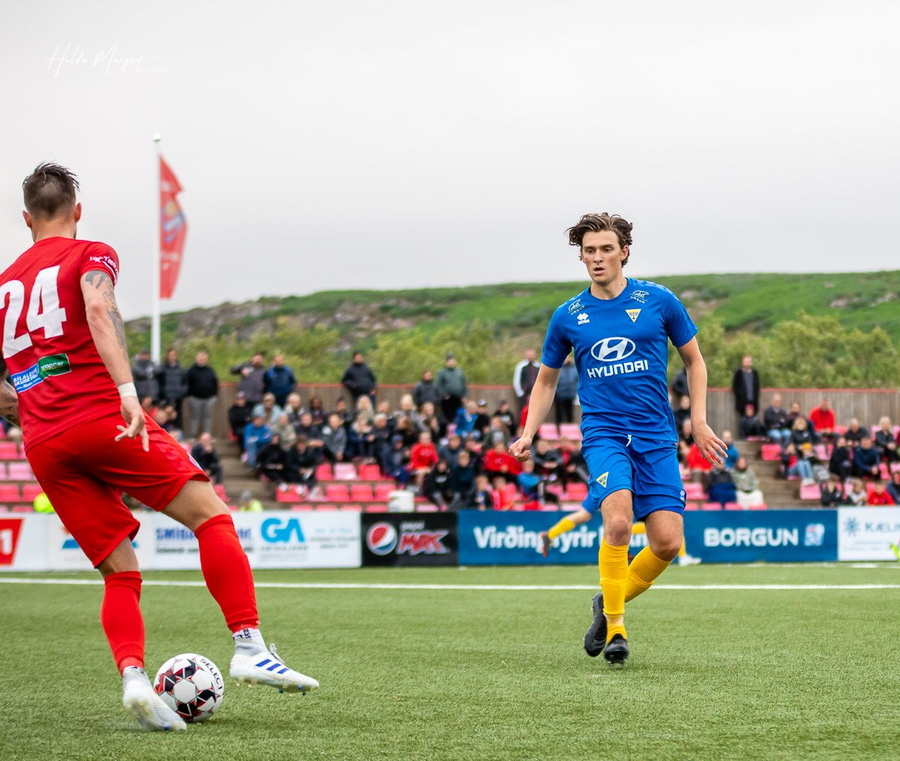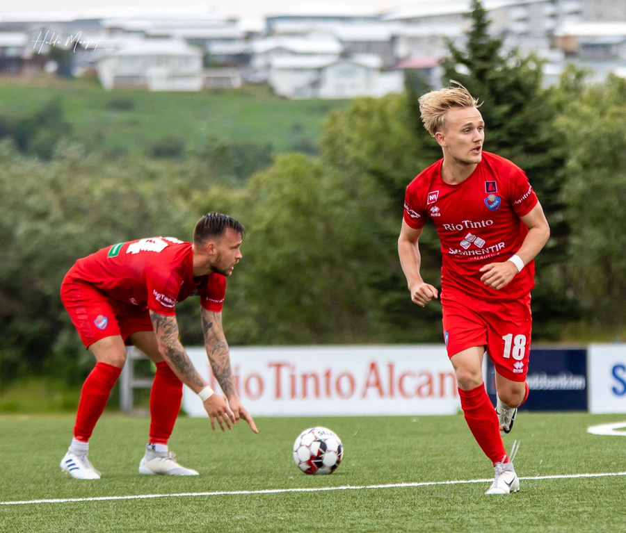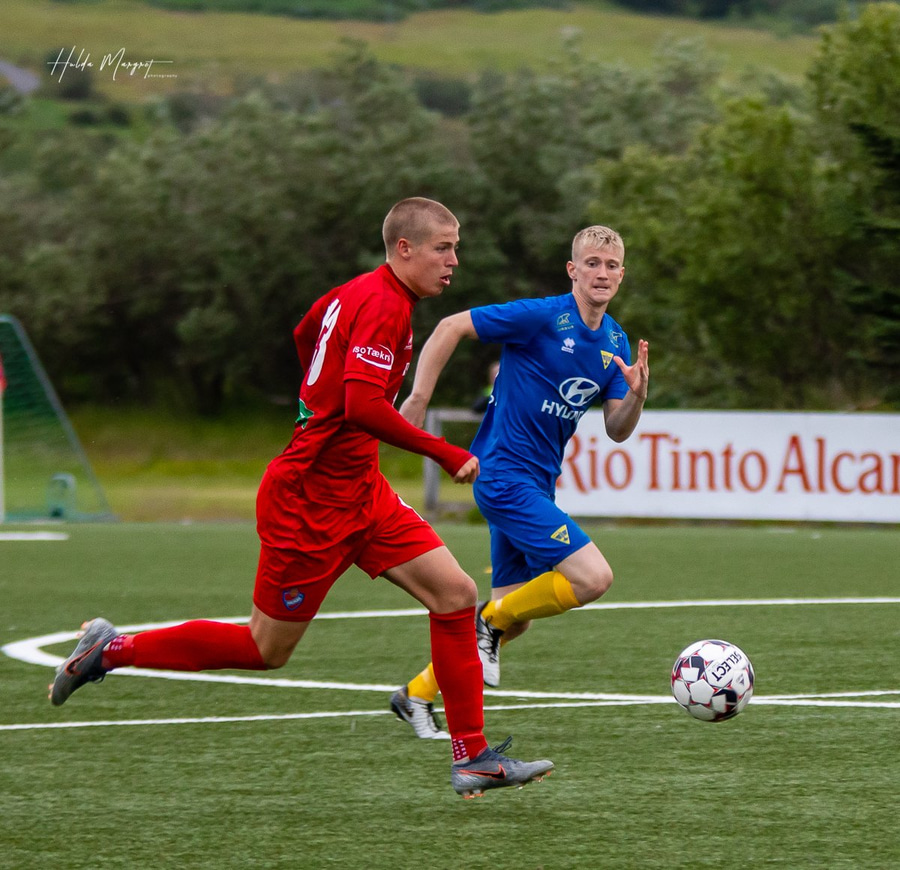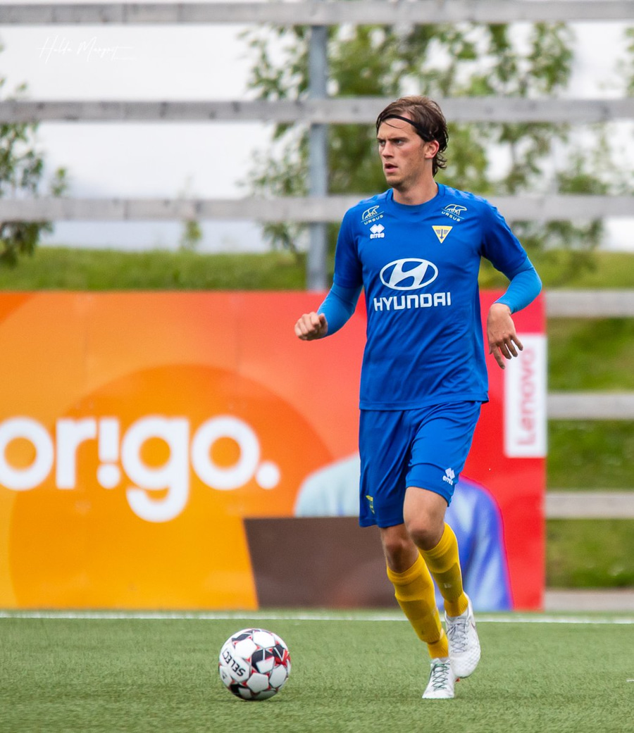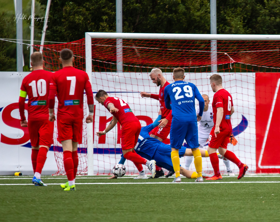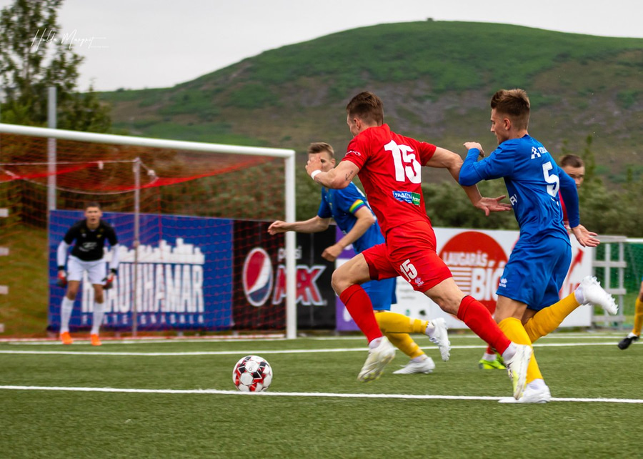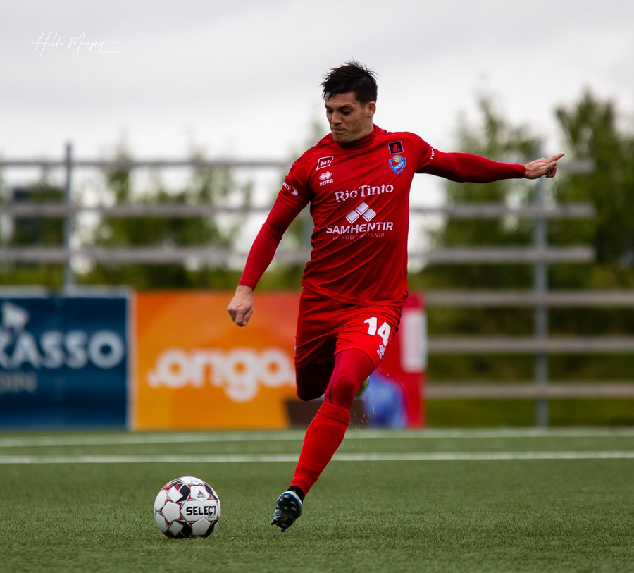Pétur Theódór er núna kominn með 10 mörk í deildinni og það er alltaf hætta þegar hann nær boltanum.