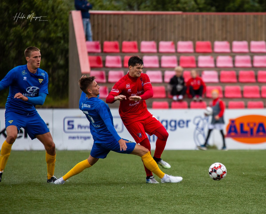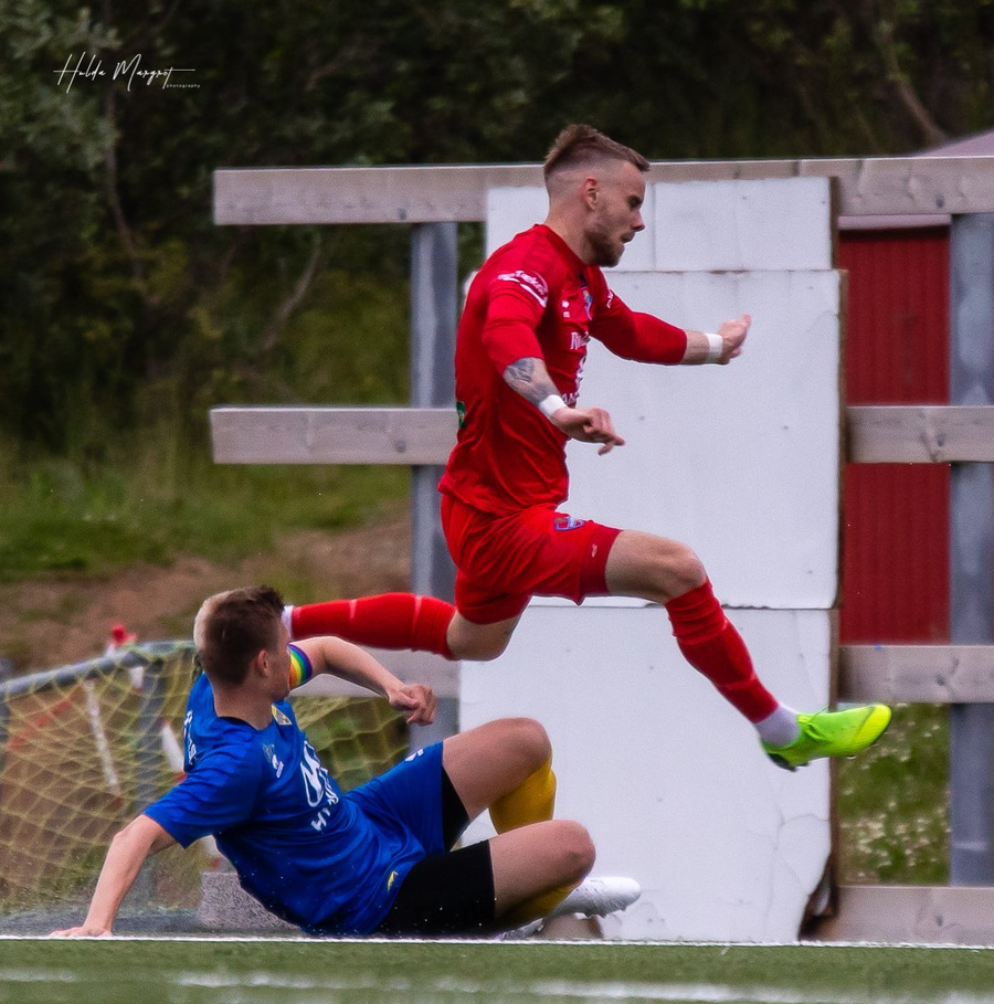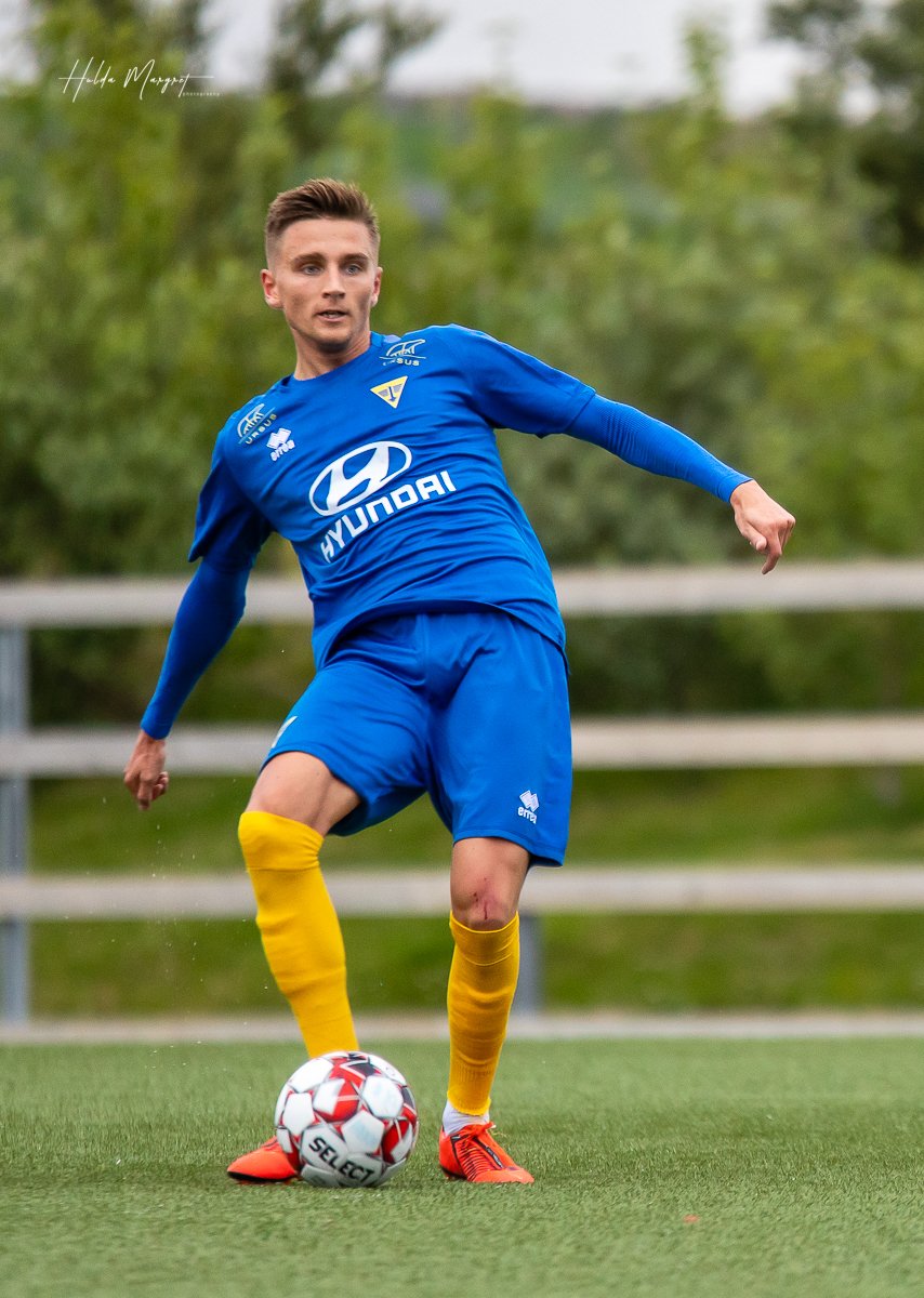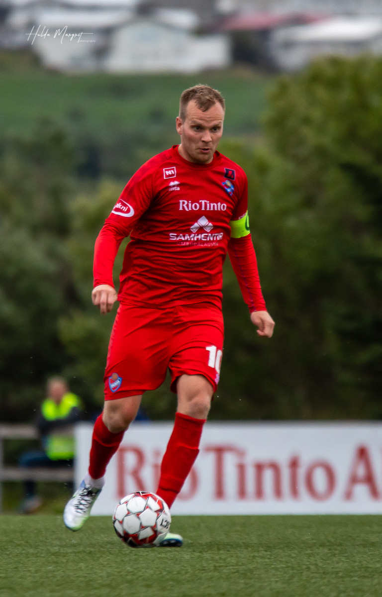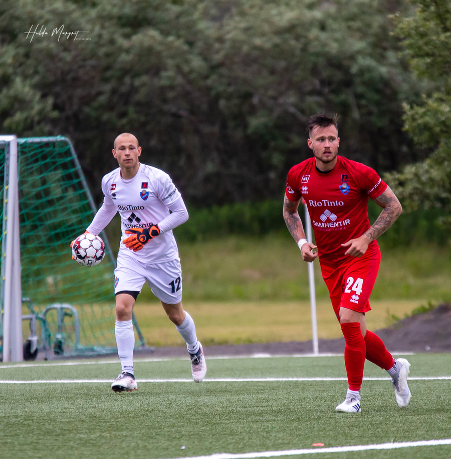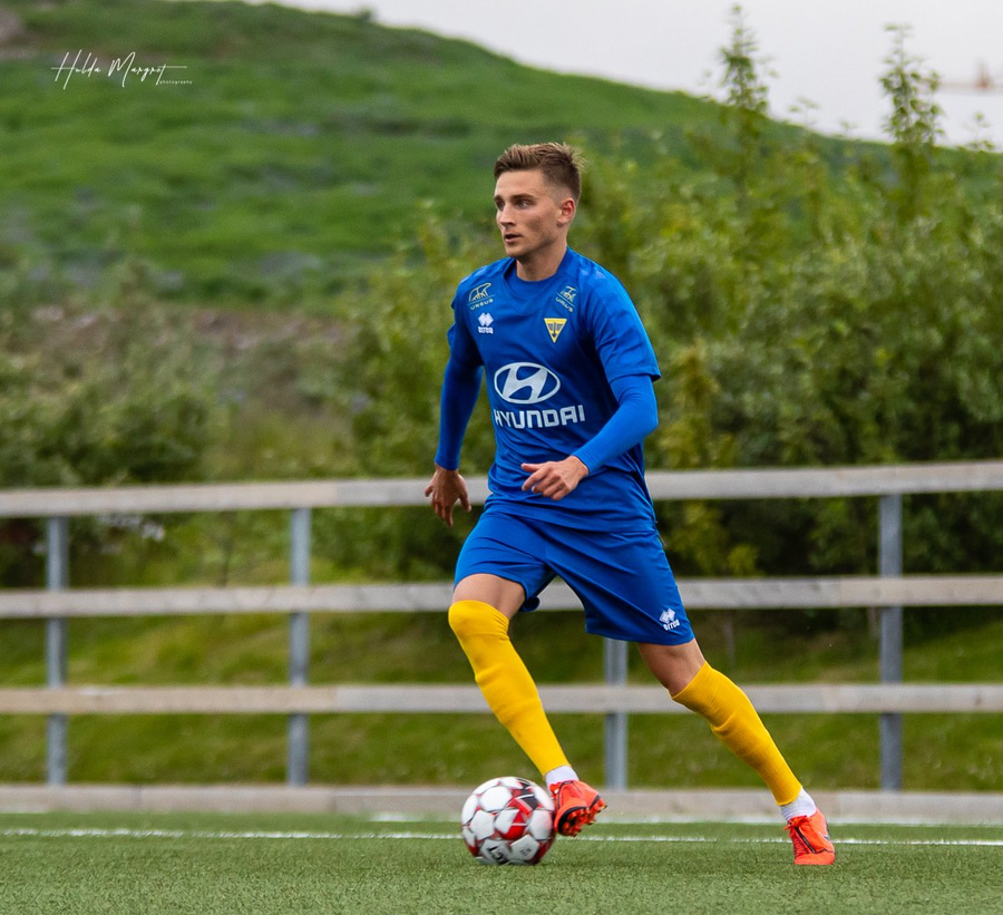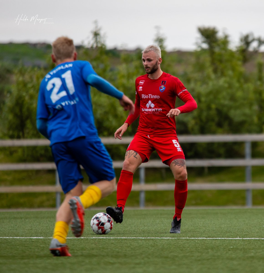 Pétur Theódór er núna kominn með 10 mörk í deildinni og það er alltaf hætta þegar hann nær boltanum.