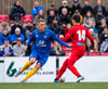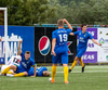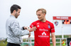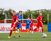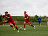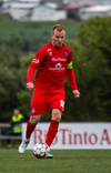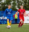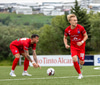 Þeir eru ekki lengi að koma boltanum fram og brotið er á Axel Frey sem liggur niðri