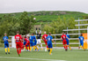 Pétur komst í gott færi en boltinn fer í varnarmann eftir skotið og fá þeir horn