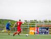 Örlítið erfiðara en fyrri spyrnan en hann tekur skotið samt sem áður og það er langt yfir.