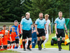 Liðin labba inná. Hefðbundnir búningar á liðunum.