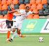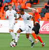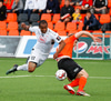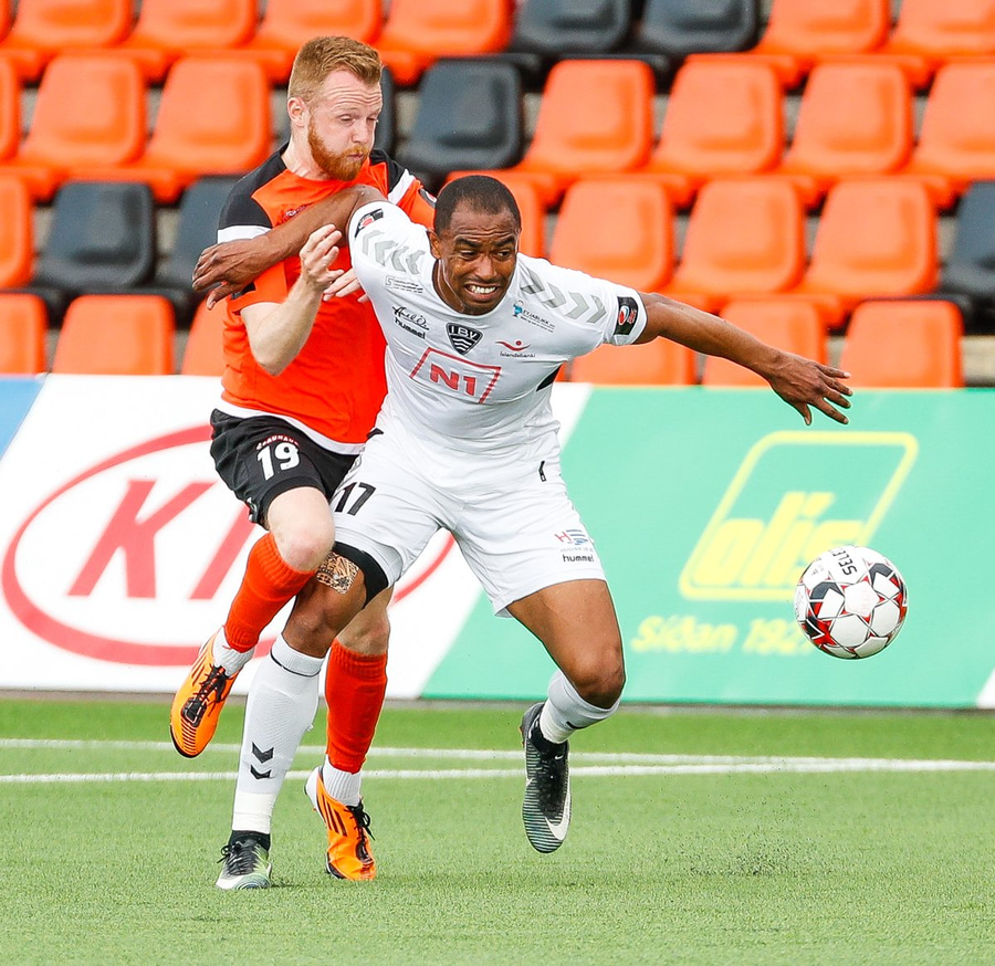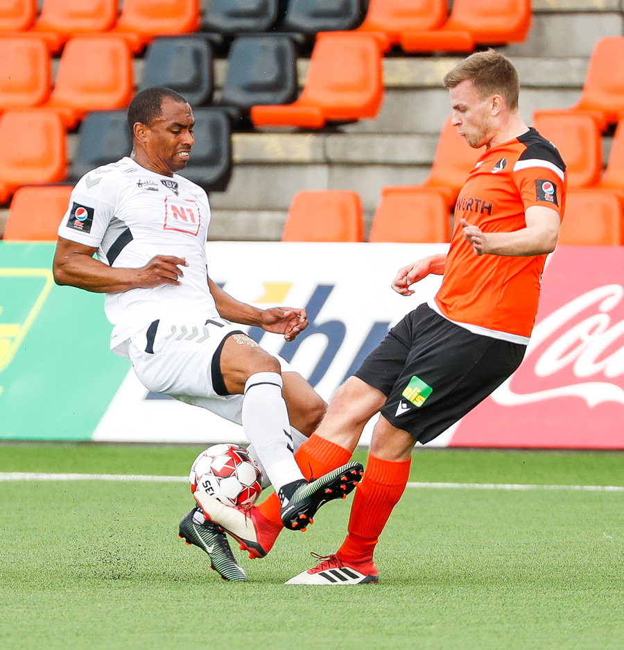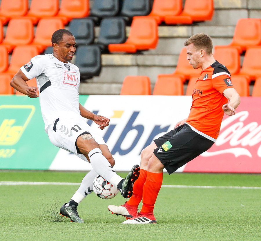 ÍBV ná að skella sér í skyndisókn og Franks ekki langt frá því að hirða sendingu frá Coelho.