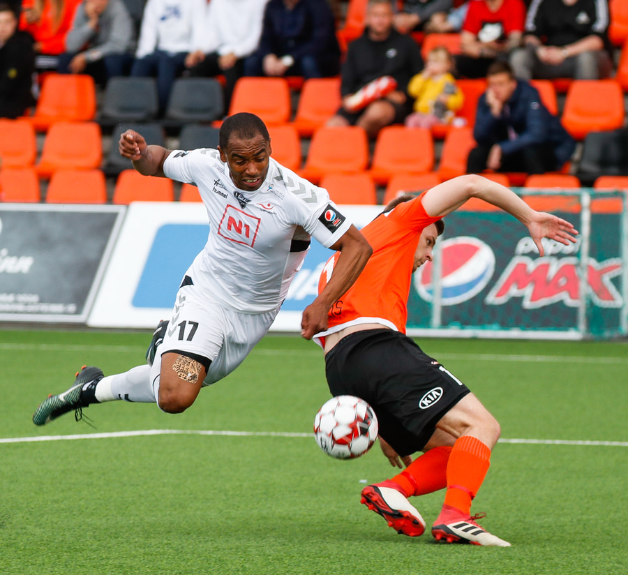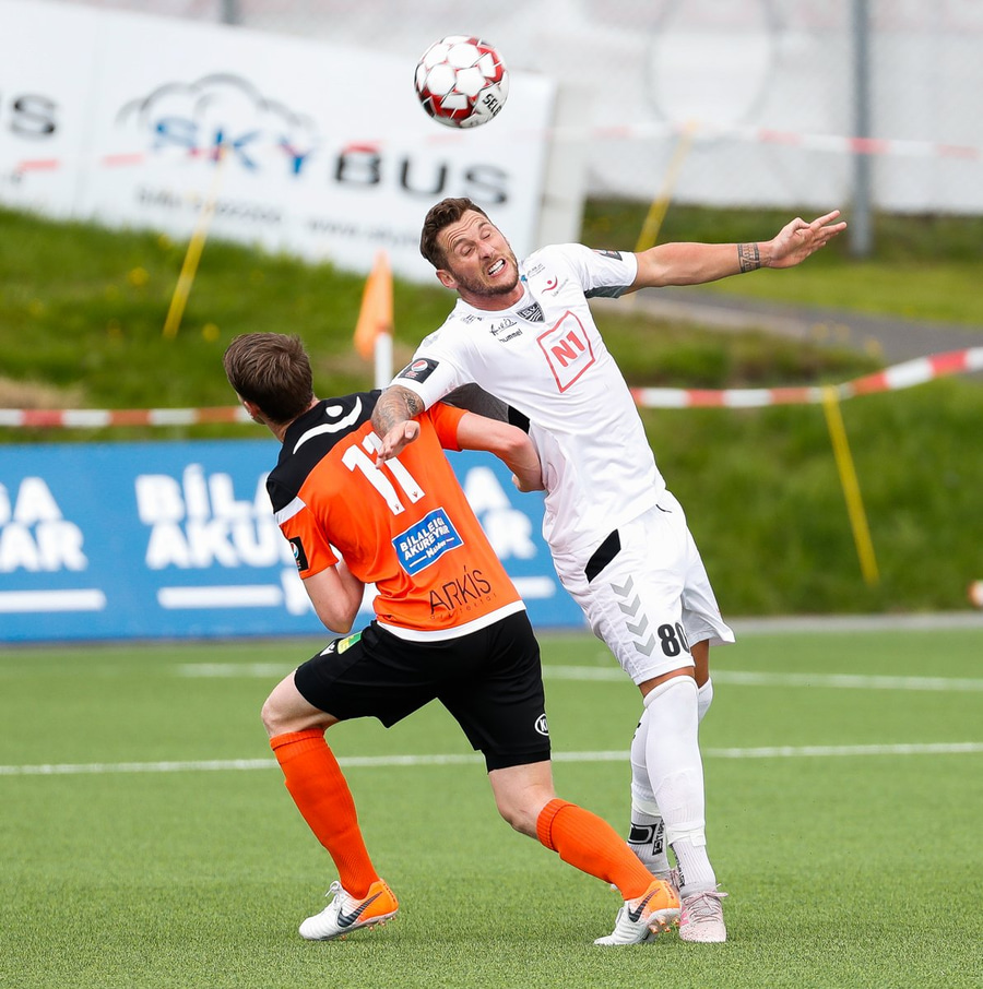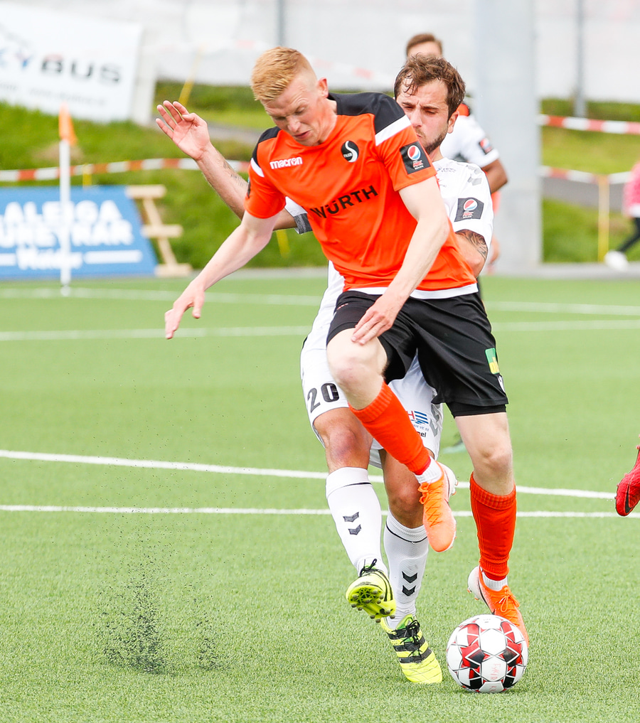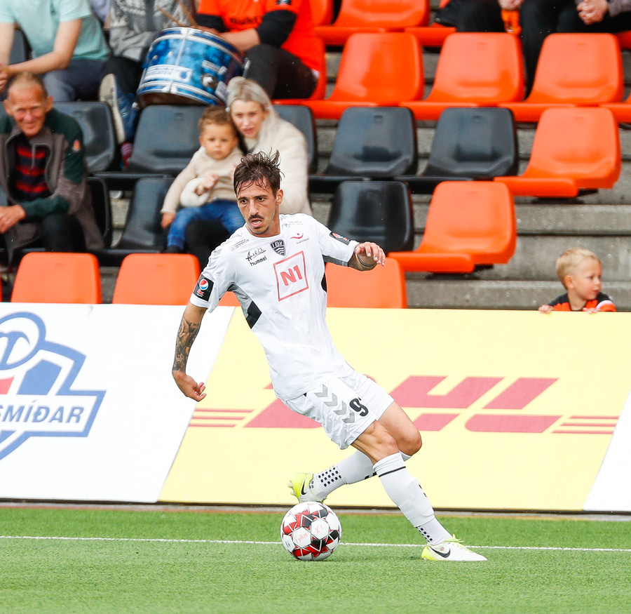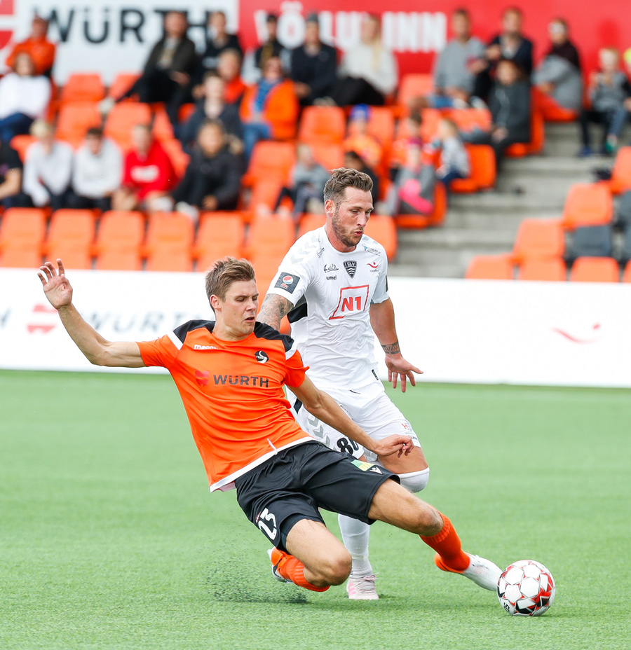 Sindri tekur þríhyrning við Martin og fær skotfæri, hörkunegla að marki en rétt framhjá.