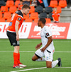 Fyrsta snerting Prah er skot úr teignum eftir geggjaðan undirbúning sem lauk með gullsendingu í gegnum vörnina á Benjamín sem er aleinn í gegn. Stefán stendur og stendur og ver að lokum með höfðinu.