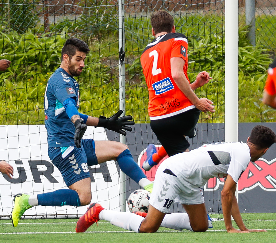 Valdimar sleppur hér í gegn eftir sendingu frá Castillion en skaut langt framhjá.