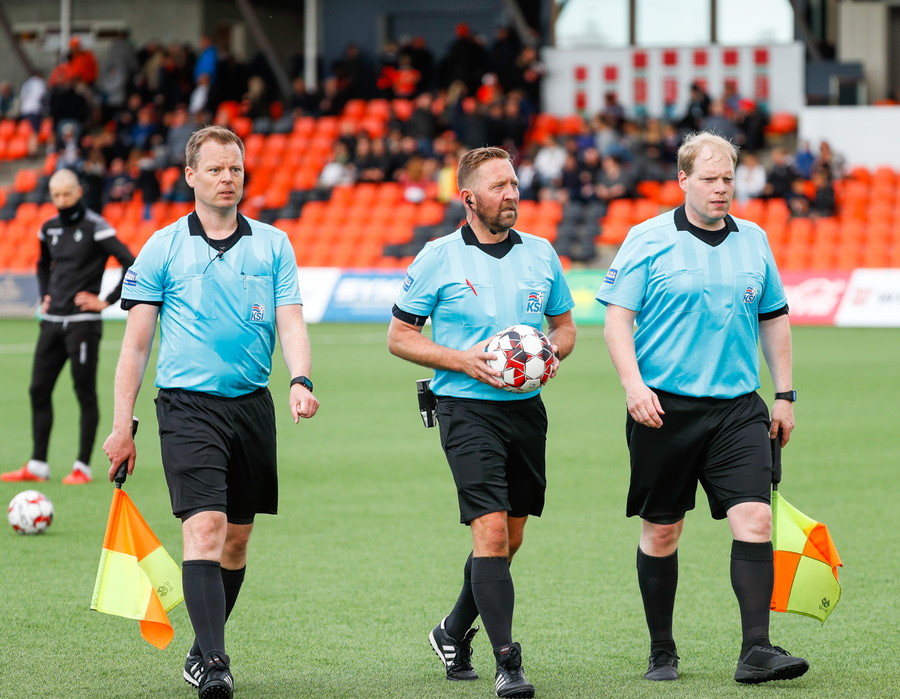 Íslenskir dómarar eru augljóslega kolfallnir fyrir ljósbláu stuttermabúningunum.
