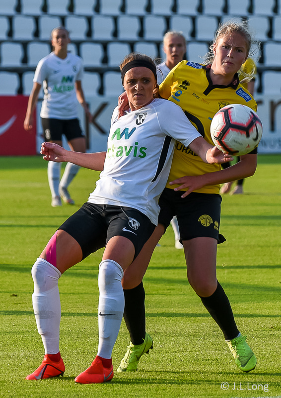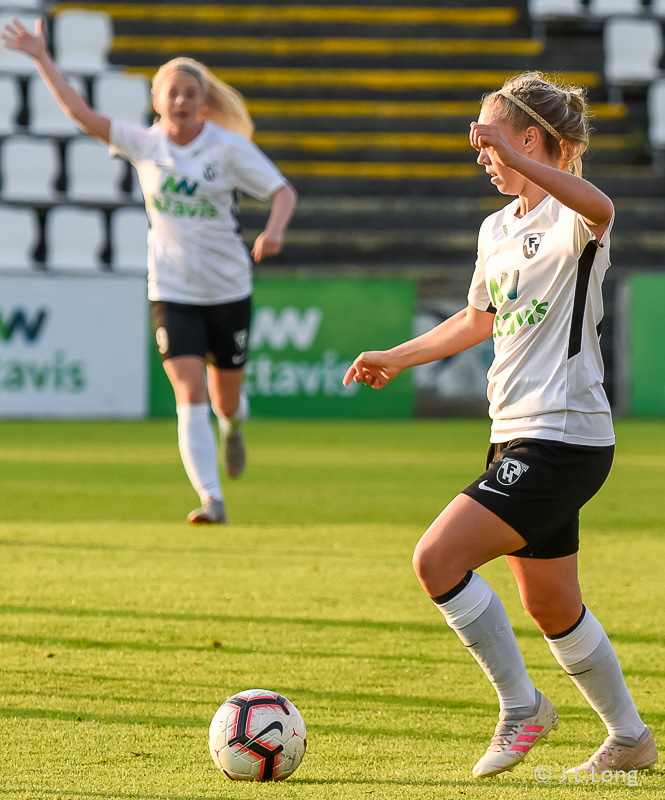 FH kemst upp hægri kanntinn og á Selma Dögg frábæra fyrirgjöf sem ratar beint á kollinn á Nótt en skallinn frá henni fer yfir markið