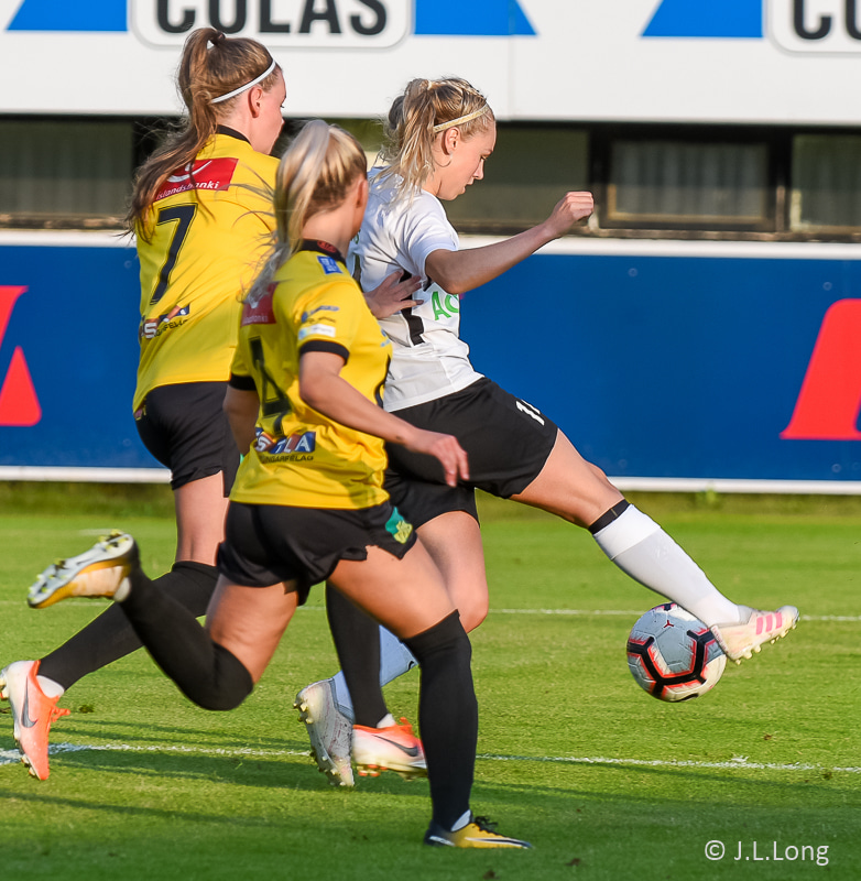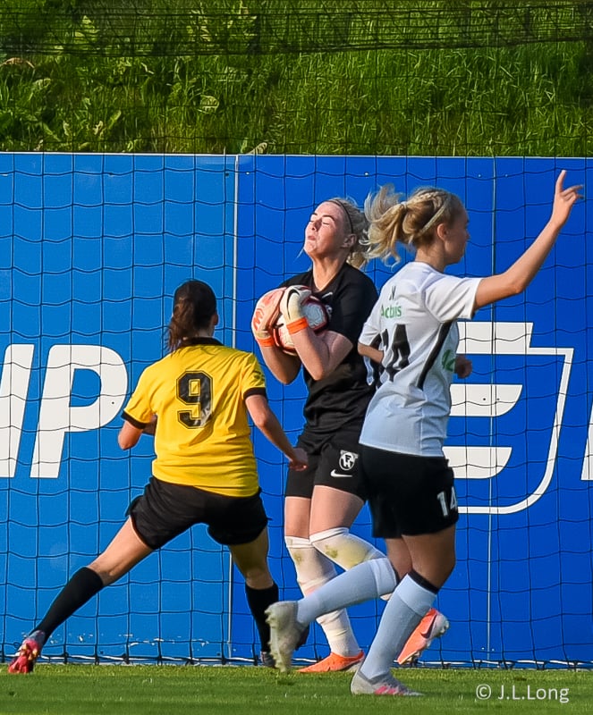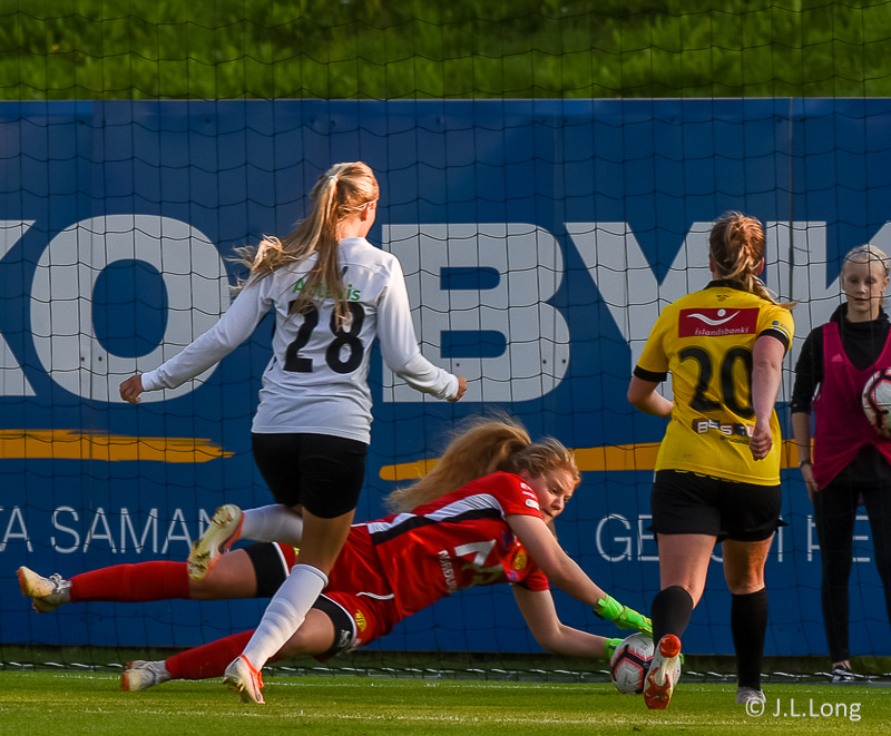 Lofandi sókn hjá Skagakonum en Maggý stendur eins og klettur í vörninnu. Þær reyna að koma boltanum tvisvar framhjá henni en það tekst í hvorugt sskipti