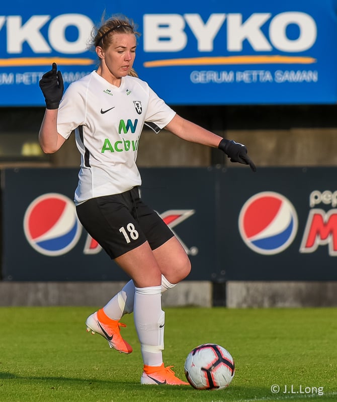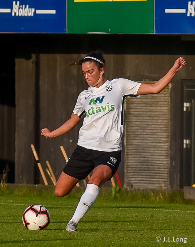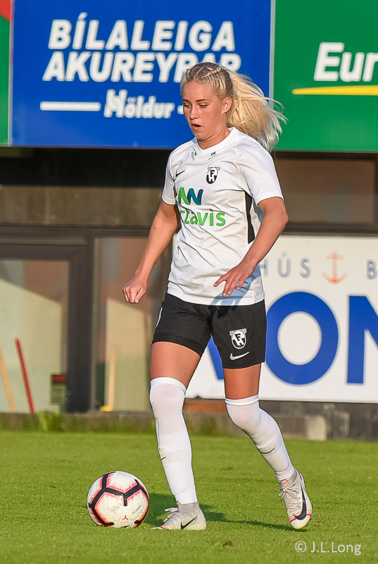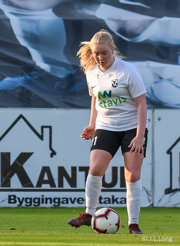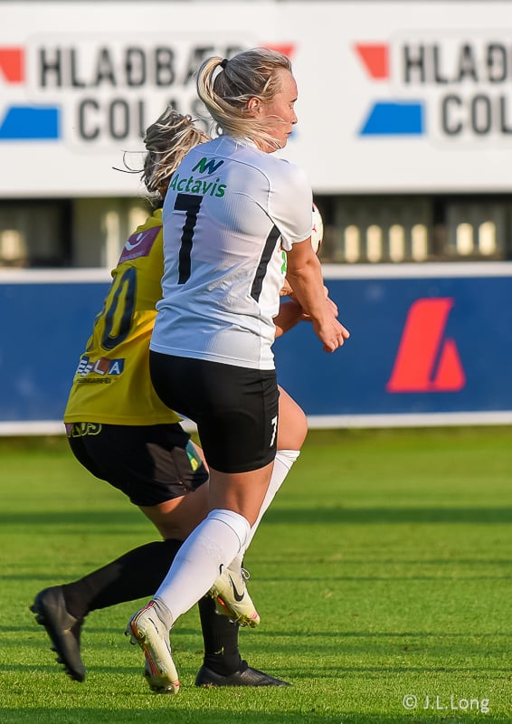 Nú eru Skagakonur farnar að færa sig ofar á völlinn þar sem þær þurfa að skora mark ef þær vilja fá estig úr leiknum