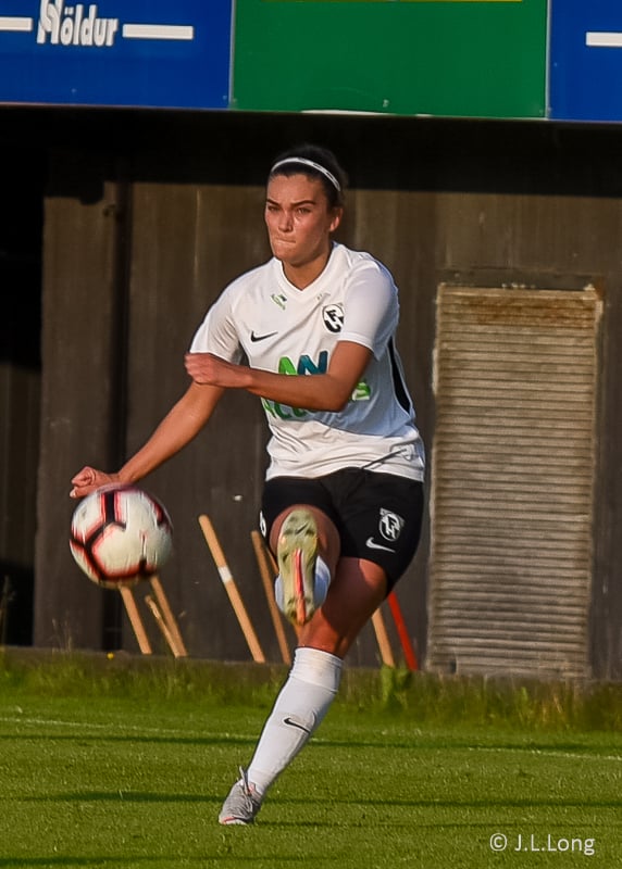 Andrea kemur inn í miðvörðin við hliðina á Maggý