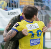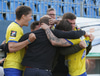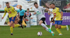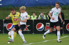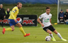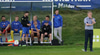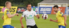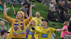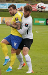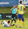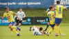 Guðmann þarf hér að fá aðhlynningu eftir árekstur við Ásgeir. Heldur um höfuðið á sér.