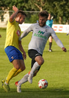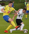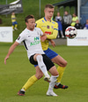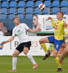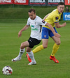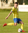 Björn Daníel hársbreidd frá því að ná góðum skalla eftir fyrirgjöf Þórðar Þorsteins.