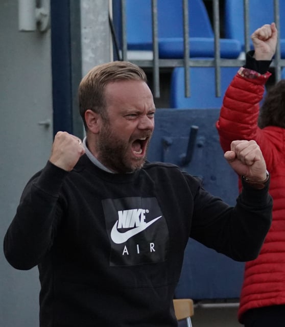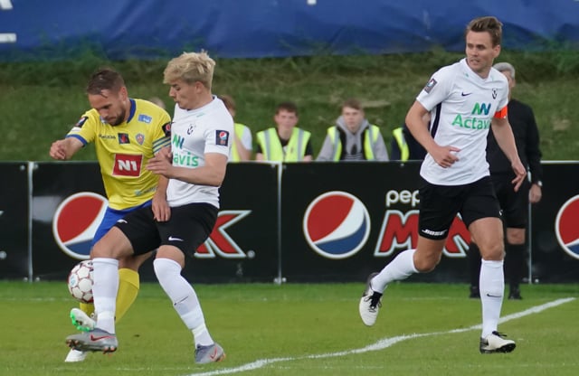 Leikurinn hafinn að nýju. David kemur út og Groven kemur inn. Steinþór fer þá sennilega framar á völlinn.