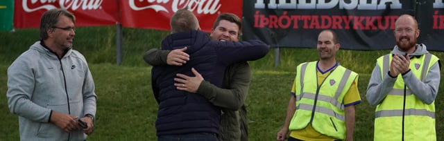 Sparkar boltanum í burtu þegar að Pétur var búinn að flauta.