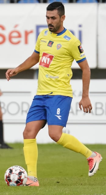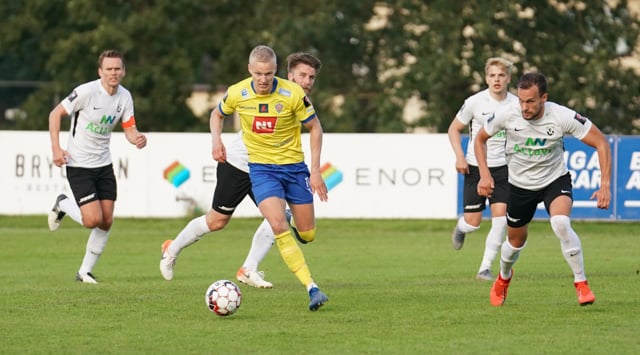 Brandur fær boltann hér fyrir utan teig og hann reynir sot í fyrsta en það fer hátt yfir markið.