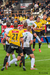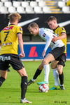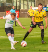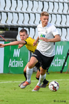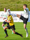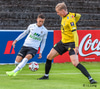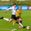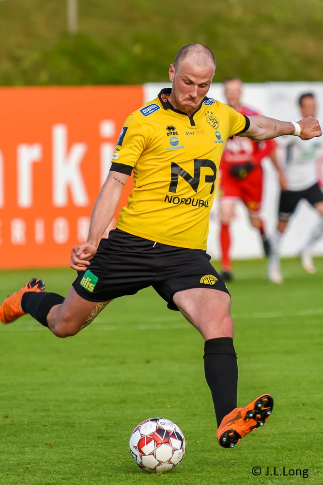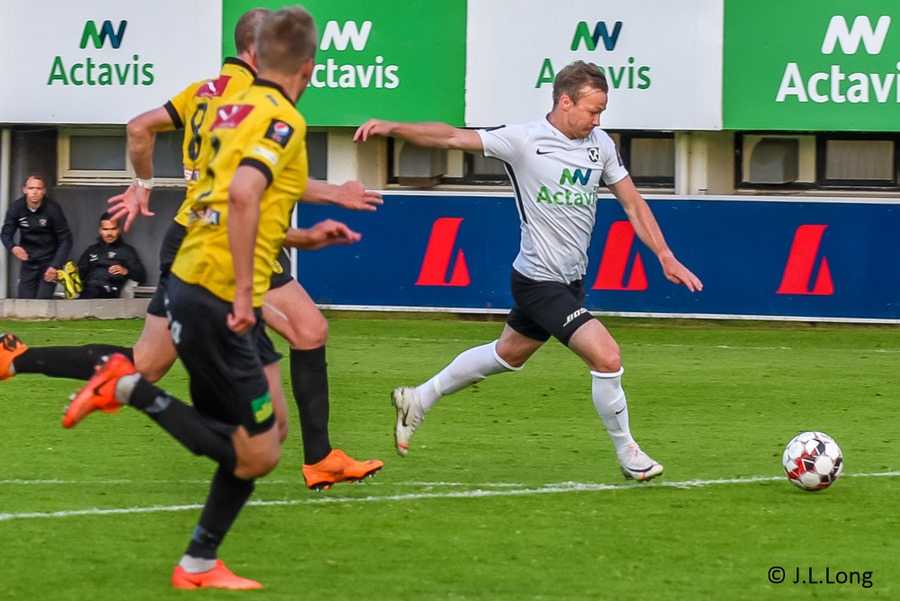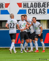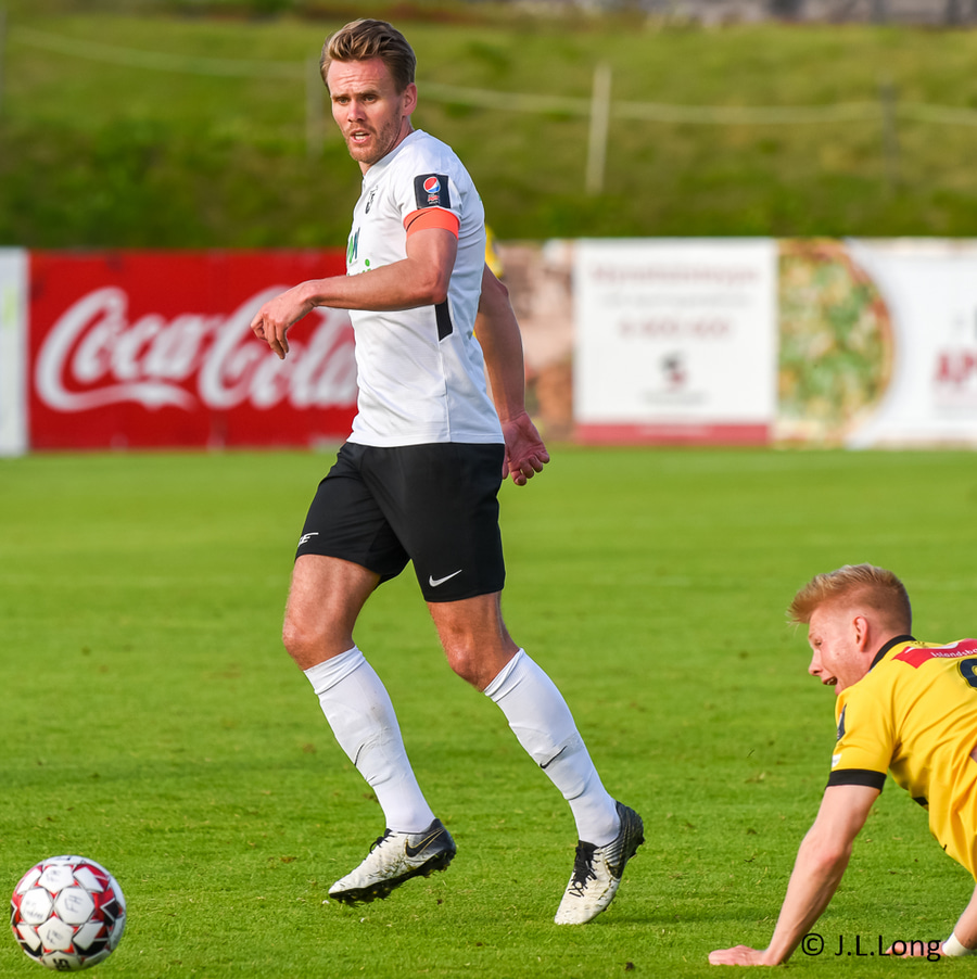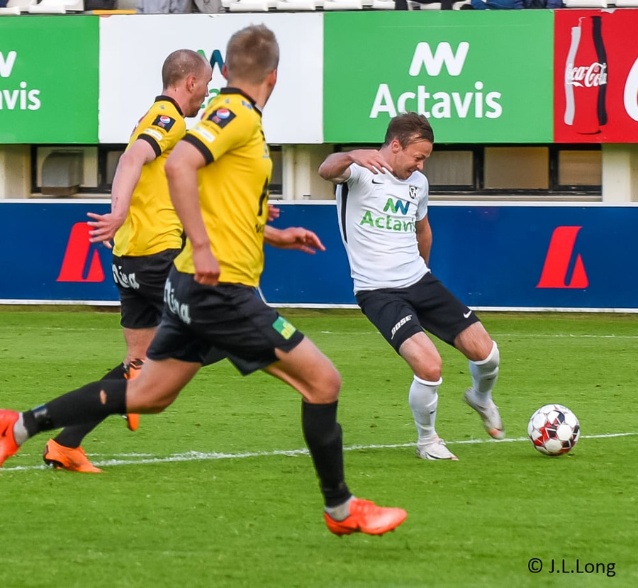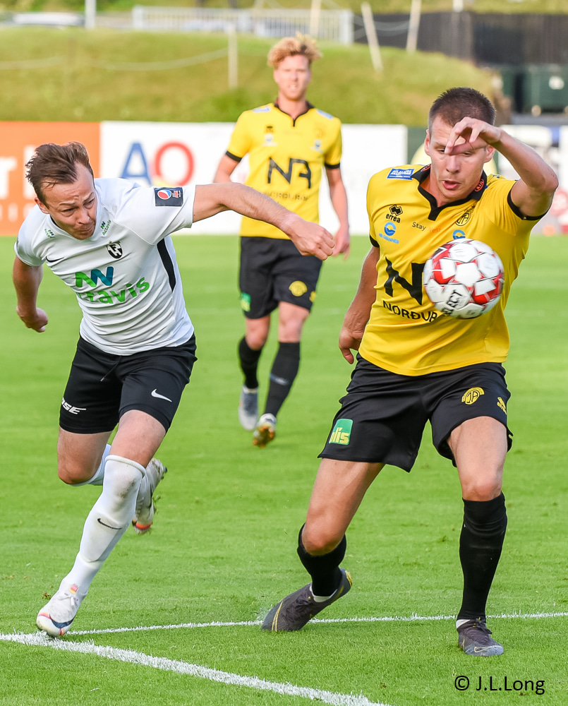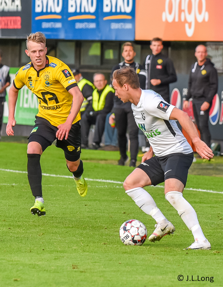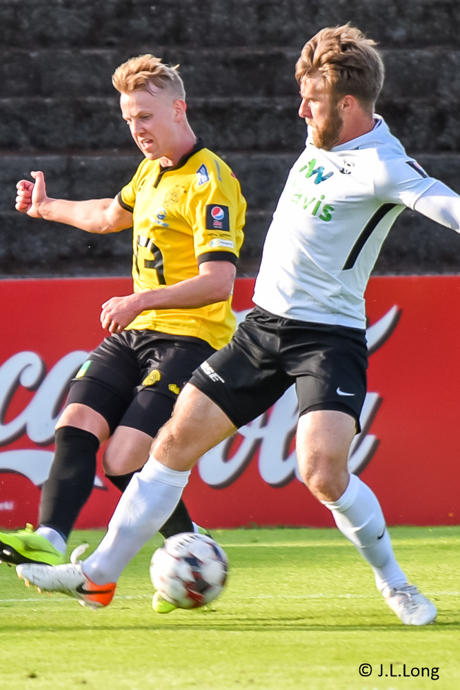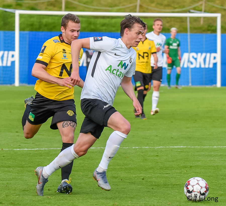 Misskilningur milli Hödda og Halls sem missa boltann á milli sín og Morten kemst í boltann en nær ekki að gera sér mat úr þessu.