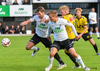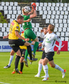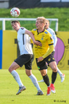 Spyrnan fín á nær og Björn Daníel skallar framhjá.