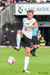 ÞÞÞ fær boltann upp í hægra hornið og reynir að fara framhjá Aroni en boltinn í horn.
