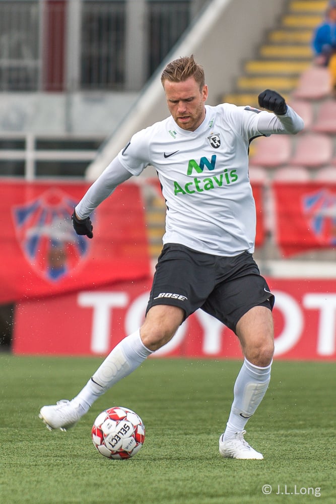 Kristinn Freyr með feilsendingu sem að Steven Lennon kemst inní og reynir skot af 45 metrum en Hannes á ekki í neinum vandræðum með það. Lennon búinn að skora sitt árlega kjaftæðismark þetta tímabil.