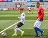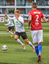 Steven Lennon kominn í fína stöðu eftir góðan undirbúning Davíðs Þórs en skot hans er slakt og framhjá markinu.