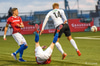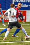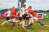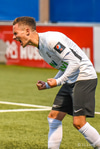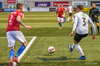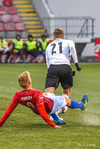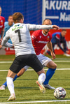 Haukur Páll fær hér neglu frá Davíð Þór beint í andlitið og svoleiðis limpast í jörðina. Leit út eins og að hann hafi rotast héðan úr blaðamannastúkunni en hann er staðinn upp og ætlar að halda leik áfram. Leit verr út en þetta var.