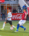Úff þetta var ljótt. Kristinn og Hjörtur Logi fara báðir í tæklingu sem að sá síðarnefndi er á undan í og Kristinn fer beint í lærið á Hirti sem að liggur eftir. Klárt gult.