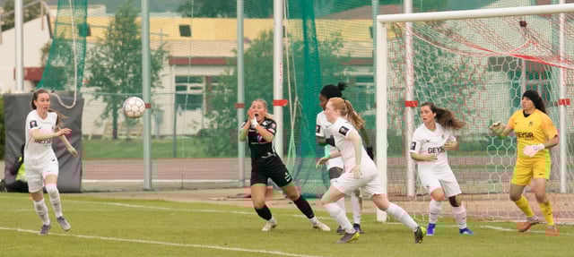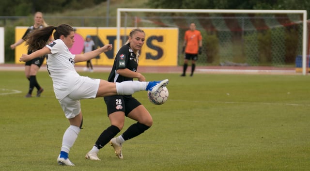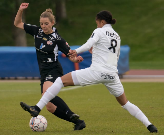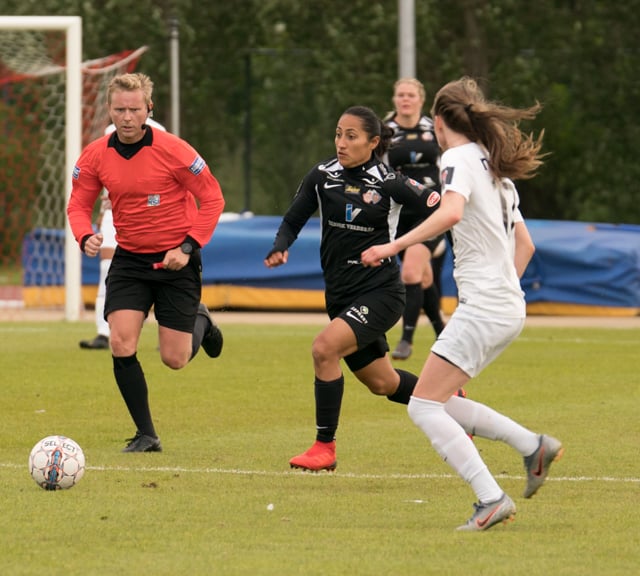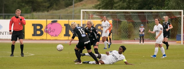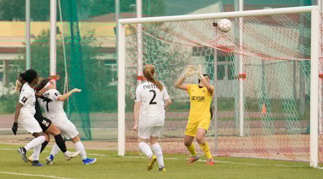 Sophie Groff fær gott færi! Natasha Anasi gerir mjög vel í að snúa og leika í átt að marki. Leggur hann á Sophie Groff sem að setur boltann rétt framhjá stönginni.
