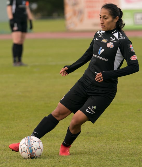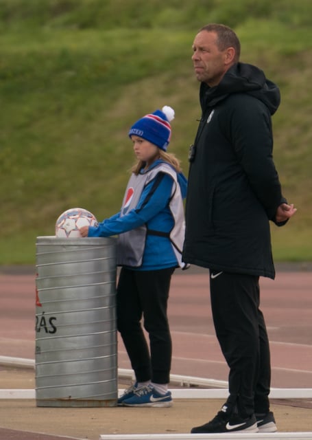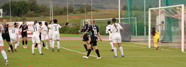 Sandra Mayor vinnur aukaspyrnu á stórhættulegum stað! Hún býr sig sjálf undir að taka hana, annaðhvort hún eða Þórdís.