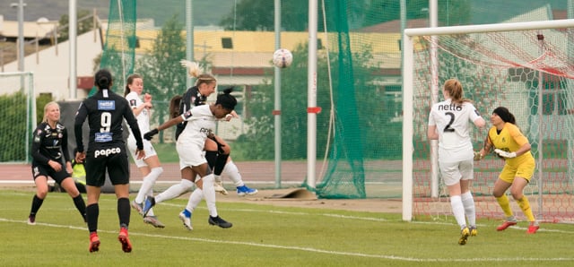 Þórdís Hrönn nælir í tvær hornspyrnur í röð. Þær eru orðnar 13 talsins hjá gestgjöfunum.
