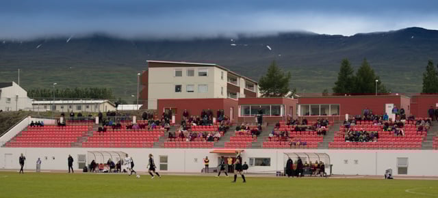 Aðstæður: 8° hiti og smá norð-vestan gola - Nokkrir kuldalegir í stúkunni