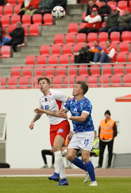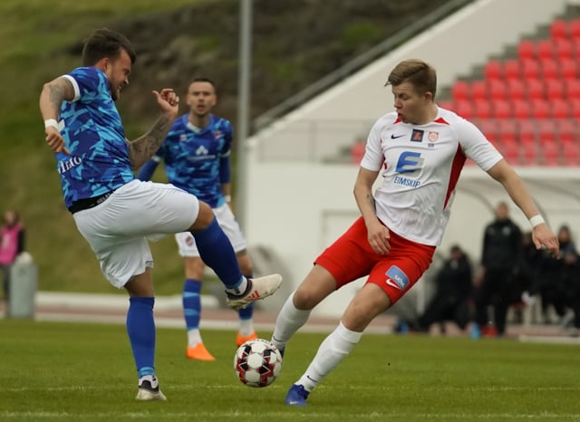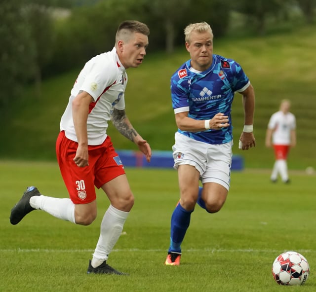 Tómas Örn gerir hér frábærlega! Arnar fær stungusendingu og er í kapphlaupi við Tómas sem rennir sér og nær að hreinsa í innkast.
