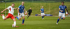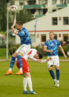 Guðmundur Már með fyrsta færi leiksins og það nýtti hann mjög illa. Arnar Aðalgeirs átti frábæra fyrirgjöf sem Guðmundur náði að skalla, markið var galopið en hann stýrði boltan framhjá af markteig.