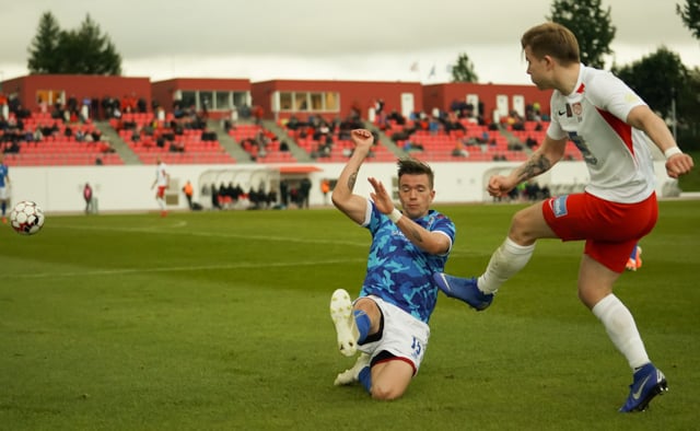 Jakob Snær varð fyir hnjaski og stingur við. Hann harka þetta af sér enn sem komið er.